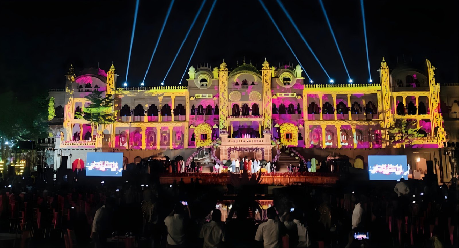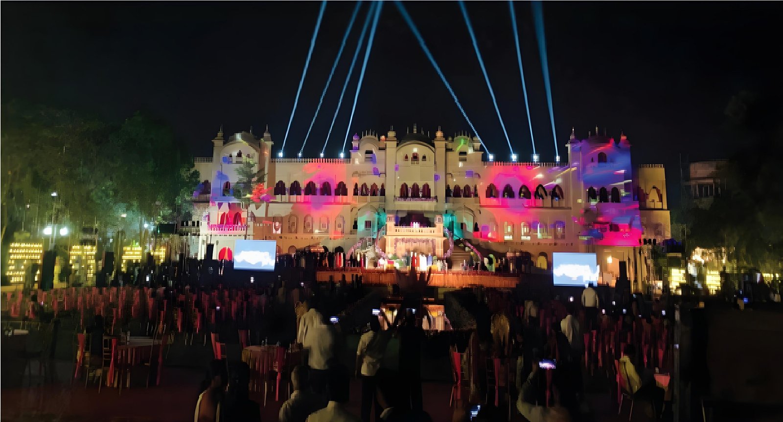 Magical Theatre (as content partner) was honored to project projection mapping the magnificent, 250 foot wide set built in 2015 at ND Studio, Kajrat, Mumbai for the well known film "Prem Ratan Dhan Payo". Amidst a Big Fat Indian Wedding, the façade came alive with a stunning projection mapping show, leaving everyone spellbound. It was a great opportunity; We were able to display our work & participate in the festivities throughout the celebrity studded evening.